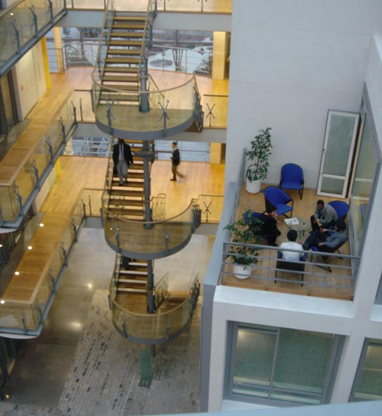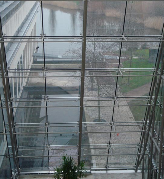 Janet and I first met at Heathrow and we had arranged to take her straight to Waterside so she could see the building in daylight. She liked the site and cathedral-like aspects of the interior street. The Waterside Walk takes participants along the street to a pavement cafe, up a lift and across a bridge to a crow’s nest high above the busy street. During World War II the area was used as a camp for the Canadian Air Force, and there is even a memorial in the park commemorating the dead that Janet weaves into her story. Layered sounds create a fragmented narrative that evokes imagined histories and memories, a past, a present, and a future. It is composed from snippets of conversation recorded on site, samples of choral music sung by the people who work there and their children, as well as the sounds of war, and Janet’s inimitable voice. The most notable element in the legacy of Janet’s work with the building and the walk is the British Airways Choir. Following from her observations about cathedral-like qualities of the street, she sent a message through the company asking for singers. It generated a sense of pride about the walk amongst the workers. A year later I visited the building around Christmas time to discover a quite substantial choir singing in the street to an enthralled audience watching and listening from the cafes, bridges and walkways. It was quite magical and I think Janet would be amused and happy at what her Waterside Walk had seeded. Susie Allen |