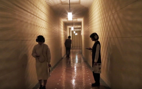 The audience are given an iPod and headphones and asked to explore a long narrow corridor. As the viewer moves through the space numerous soundtracks play all dependent on where the person is in the corridor. Audio fades up as they enter a certain area and fades down as they leave that area. Sounds overlap and mix together all controlled by each individual. Each audience member becomes a DJ using their body movements as they ‘play’ the space.