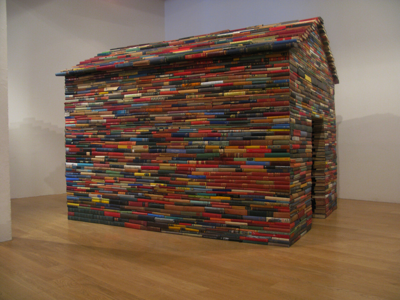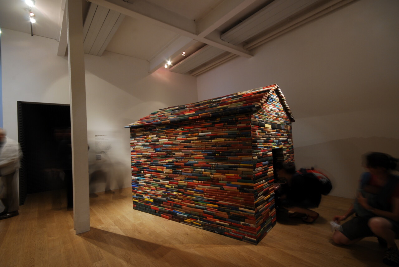 This is a house made entirely of antique books, mostly english literature published in the United Kingdom. Spines out, pages in, the work is a library turned in on itself, a space of infinite possibility where nothing may be read yet everything imagined. The work has no windows and in the absence of external stimulation, we must imagine the worlds of the books, and hear the voice in our head that talks to us when we read. Books, the stories they tell about the opportunity they offer for escape into other worlds, are a key inspiration for Janet Cardiff and George Bures Miller.
