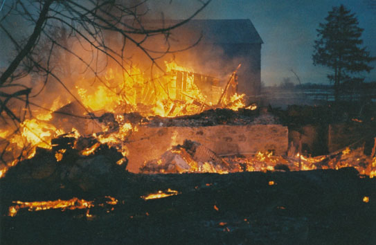 We arranged to burn down an old farmhouse in Ontario Canada and the local fire department agreed to supervise the fire. The viewer sees and hears the firemen running past the burning house in 3D audio.