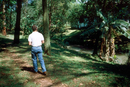 | In Drogan’s Nightmare, Cardiff built a kind of contemporary arcadia – an ideal place, a landscape for reflection, introspection, a place for a life of the mind. While artists from the classical era imagined it as a paradisical place, an idealized space where man was in harmony with nature and culture, Cardiff ’s walk, on the other hand, reveals a disenchantment with consciousness. Starting in the XXIV Bienal de São Paulo, Cardiff took visitors outside for a walk, where they became enmeshed in a plot that took them on a short journey into the interior of the park, but also, into the characters’ interior. In the end, the visitors are left in the woods opposite the stream, with the memory, or perhaps delusional image of a moment that becomes enlightened by the desire between two human beings. The tour takes the visitors back to the starting point without the conclusion of the story into which they were taken.