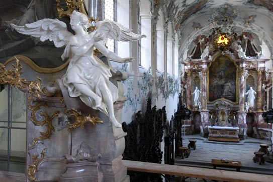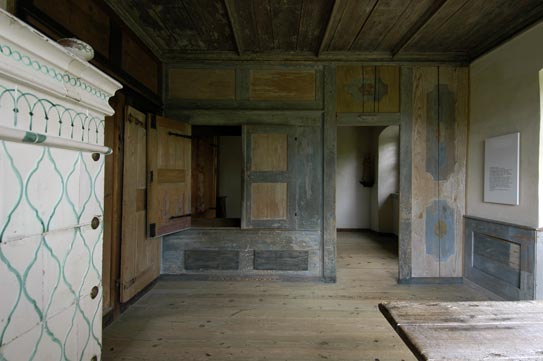 We walk together. She keeps very close to me. “I’m glad you’re walking with me. This place is full of ghosts.” She strides on purposefully, going down a few steps into the Fehr Room, named after the family that lived for centuries in these prestigious premises following the dissolution of the monastery. She shows me a photograph hanging on the wall. There they are, the Fehrs, eating a meal in the cloister garth – an idyllic scene from a time long past. We go through a door. We are standing inside a space that has been partitioned off. Folded tables clutter up the small space; a coffee maker stands in front of a large mirror. It is a narrow space, a bit shabby. So even a museum has its in-between spaces, small hidden corners that aren’t meant for public viewing. Here, the impression of the past so carefully produced in the museum rooms reveals itself to be an illusion, a backdrop. A man talks about being alone, about what it’s like when silence becomes oppressive, when the smallest noise takes on meaning. But we go on into the refectory, the monks’ lavishly furnished dining room. On the wall hang pictures of important Carthusian monks such as St. Bruno of Cologne, who founded the order, or St. Hugo of Grenoble, his patron and sponsor. On the paneling there are pictures of hermits; they too are important role models for the monks sitting around the dining tables. They do not talk while they eat. Carthusian monks take a strict vow of silence when they enter the monastery. Only once a week do they allow themselves to speak. One of the monks reads a passage from a book, in Latin. I don’t understand a word, and my guide, whispering, urges me to leave the room, to go out into the cloister. What is the man saying ? “The sound of my memories inside my head.” Who is this mysterious person talking about loneliness, silence, memory, and longing ? Is he a monk, or my guide’s lover ? Perhaps even my alter ego ? In the cloister it smells slightly musty. On the ground, red bricks have taken the place of sandstone slabs. The homemade bricks were probably cheaper than the thick paving stones from the quarry, here in this wide cloister that connects the separate living quarters of fifteen monks. Now we meet the monks again. They go past us, singing. The sun is shining. The light is pleasant, soft. “I can see my shadow against the wall, walking with me,” my guide says. She can see her shadow ? And where’s mine ? Has she stolen my shadow, like the devil did to Peter Schlemihl ? I see only one shadow. We enter a monk’s cell. I look out of the window; I hear an airplane, but there’s nothing to be seen. Nor does the monk I hear coming down the stairs from the attic actually walk through the door. “What is real ? What isn’t ? Where am I ?” I wonder, and pull the headphones off. It’s all still there: the monk’s cell with its table, bed, and crucifix; seemingly untouched, as if the monk left only yesterday. I am back solidly in the museum that was opened to the public some twenty years ago.4 So I put the headset back on and follow my guide back out of the monk’s cell and over to a bench in the cloister garth. She draws my attention to the Fehr family who are sitting beneath an apple tree eating a meal. In my mind’s eye, I see the photograph we were looking at a few minutes ago. So that’s what is was like back then. Then suddenly there’s the sound of banging and crackling, fire and sirens, planes and horses. Violence shatters the idyll. Is this present-day war or the Ittinger Sturm of 1524 ? On the Ittingen Walk time shifts as much as space. And on through the garden to the hidden back entrance to the museum cellar. We creep through a narrow, dark storage area into one of the museum exhibition rooms. “I read that the family used to grow mushrooms down here. Imagine how it must have smelt in the dark. Feet walking through earth.” How different from the air-conditioned, brightly lit museum space and its exhibits we are presented with today! What a difference between imagination and reality, past and present. Then we go upstairs, along passageways, around corners. I lose my bearings in the maze of rooms and have to rely completely on my guide. She leads me to a small, hidden partitioned area that is almost completely taken up by a filing cabinet with lots of empty drawers. I pull out one or two of them while listening to my guide. “All these empty drawers. They’re like perfect little worlds. Little boxes of forgotten air. I just remembered a dream from last night. I was looking down a deep water well into darkness. A man was kissing me softly on the lips, then I woke up. Close the drawer. Now that dream is in there.” An archive of dreams inside the monastery. A view from the gallery into the monastery church with its cheerful stuccos and frescoes telling the story of St Bruno, then on through a labyrinth of rooms, down a small, steep staircase, along passageways and corridors, until finally we find ourselves inside the chapel choir. The monks walk past us, singing. They are leaving us. “I imagine them going to their rooms, the sound of their own bodies the only thing to keep them company. We have to go now too. Goodbye.” I sit alone in the church. My guide has disappeared as mysteriously as she appeared. She leaves me behind in a reality that has been enriched by this exceptional experience. For a brief time it was as if I was living in a film, or rather in a dream, and even after I have handed back the CD player at the desk, the world around me retains at least a trace of dreaminess and unreality following my walk through the monastery. I am left with an idea of the fragility and illusoriness of what we usually call reality, and an understanding of the power of the imagination. Markus Landert |